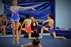 After the Summer Olympics of 2012 I recieved a phone call from a Mother that was looking for a Rhythmic Gymnastic Coach for her daughter. (her daughter had fallen in love with this sport) She had met a former Rhythmic Gymnast that knew I lived in the area. I had retired from coaching many years ago after my last gymnast had made the U.S.A. Olympic Team. I never thought, I would ever be involved with this beautiful sport again. Life is funny. Sometimes, it comes full circle. Many moons later here I am coaching these beautiful athletes. Their enthusiasm, passion and joy for this sport is contagious! The cherry on top of the sundae for me is that Nattalie is coaching with Me. Nattalie was my student for 12 years. Now we are coaching together. How cool is that!?! It's so much fun to train these talented athletes in this creative, passionate sport!
